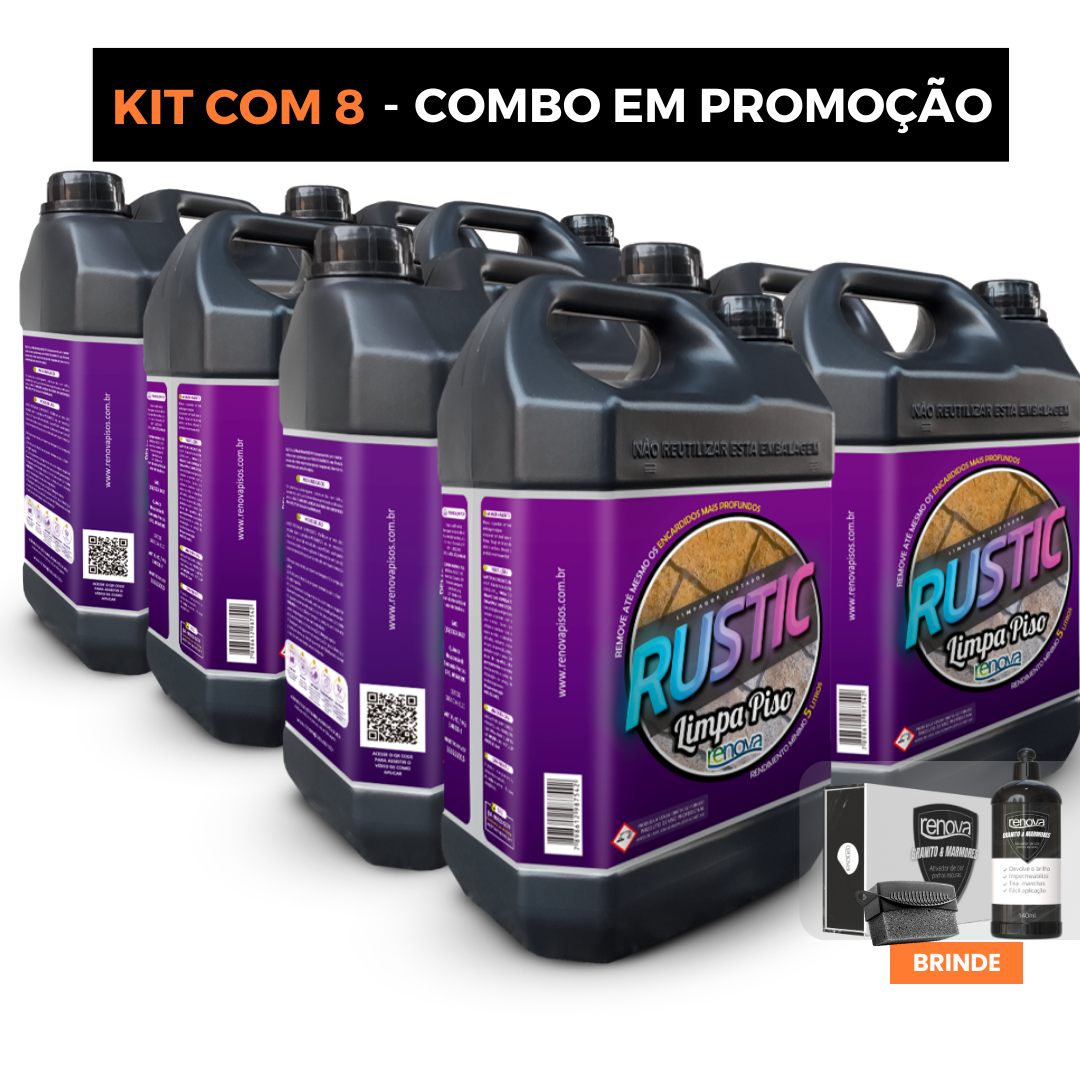 O RUSTIC LIMPA PISO RENOVA é um limpador concentrado de alta performance, desenvolvido para remover encardidos profundos sem necessidade de esfregar. Sua fórmula exclusiva dissolve a sujeira incrustada, restaurando a aparência original do piso em minutos. Seguro para diversos tipos de superfícies, é a solução ideal para quem busca uma limpeza profissional sem complicação e com alto rendimento. Um único frasco rende 30m². ✅ Poder de limpeza instantâneo: Remove até as crostas mais difíceis. ✅ Zero esforço: Basta aplicar, esperar alguns segundos e enxaguar. ✅ Seguro e sem cheiro: Não mancha, não desbota e não agride o piso. ✅ Alto rendimento: Cobrindo até 30m². ✅ Eficácia comprovada: Mais de 80 mil clientes satisfeitos.